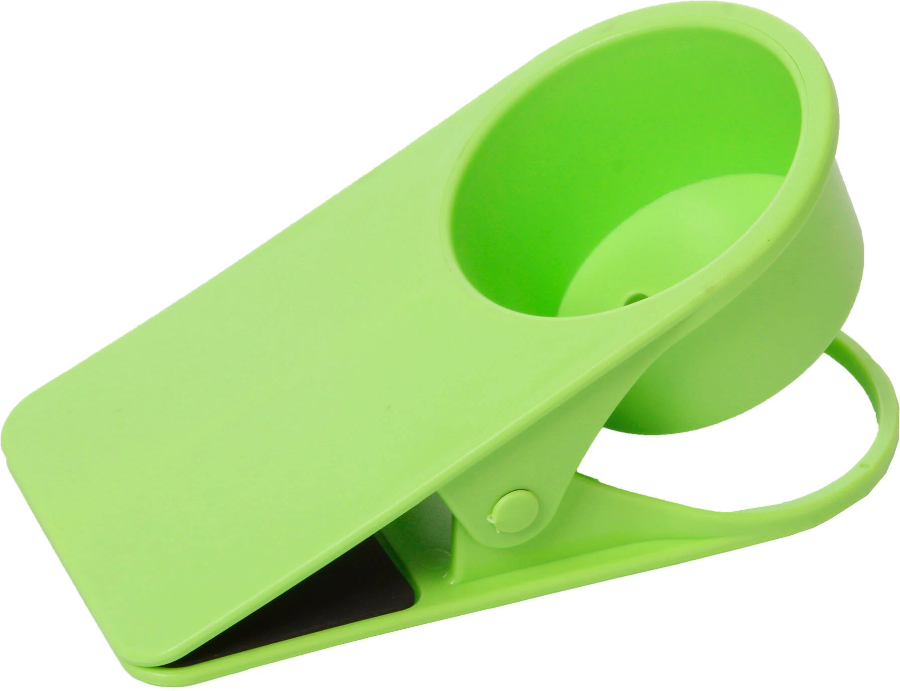 Praktische bekerhouder van hoogwaardig kunststof. Ontworpen als een gigantische klem, kan de Drinkmaster zonder problemen in enkele seconden aan elke tafel of vlakke rand worden bevestigd. De met een antisliplaag gecoate klemmen garanderen een stevige grip op bijna alle oppervlakken.