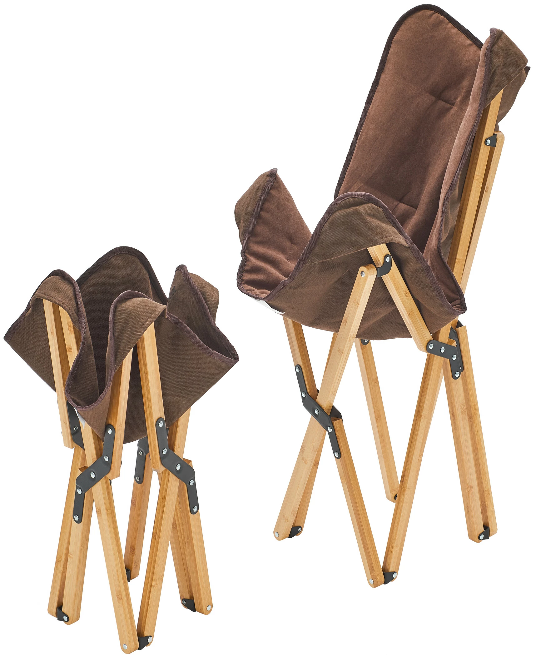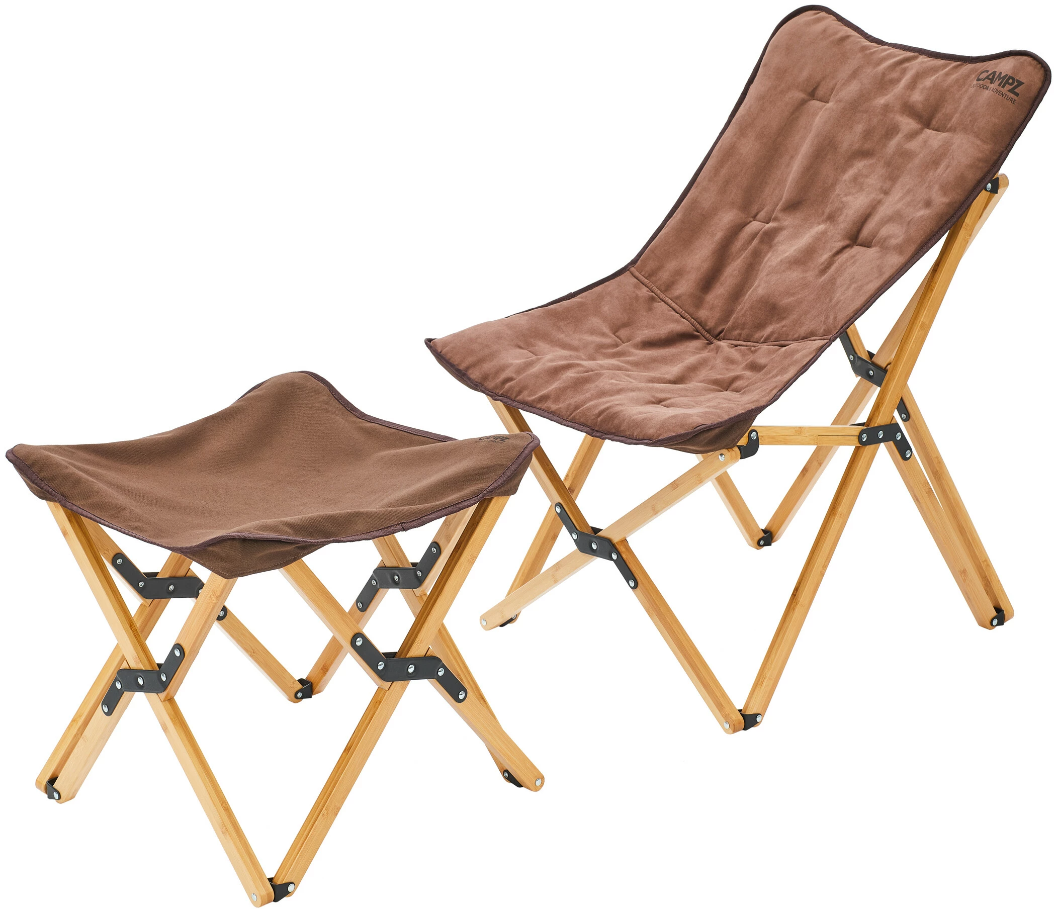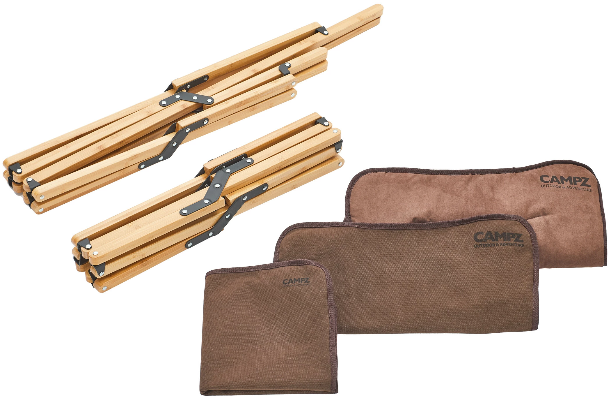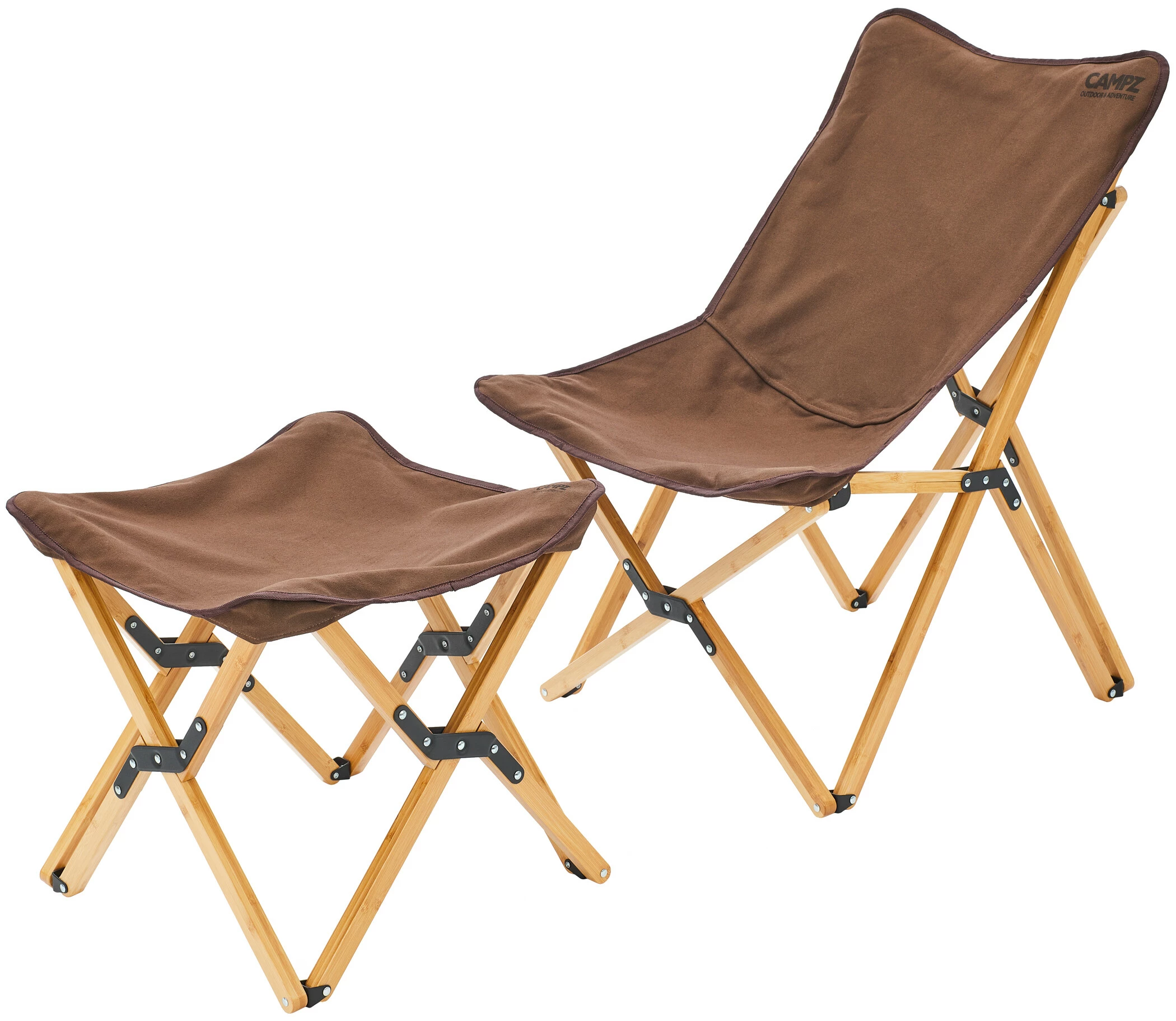 CAMPZ Bamboo Folding Chair Set with Cover and Footrest, bruin