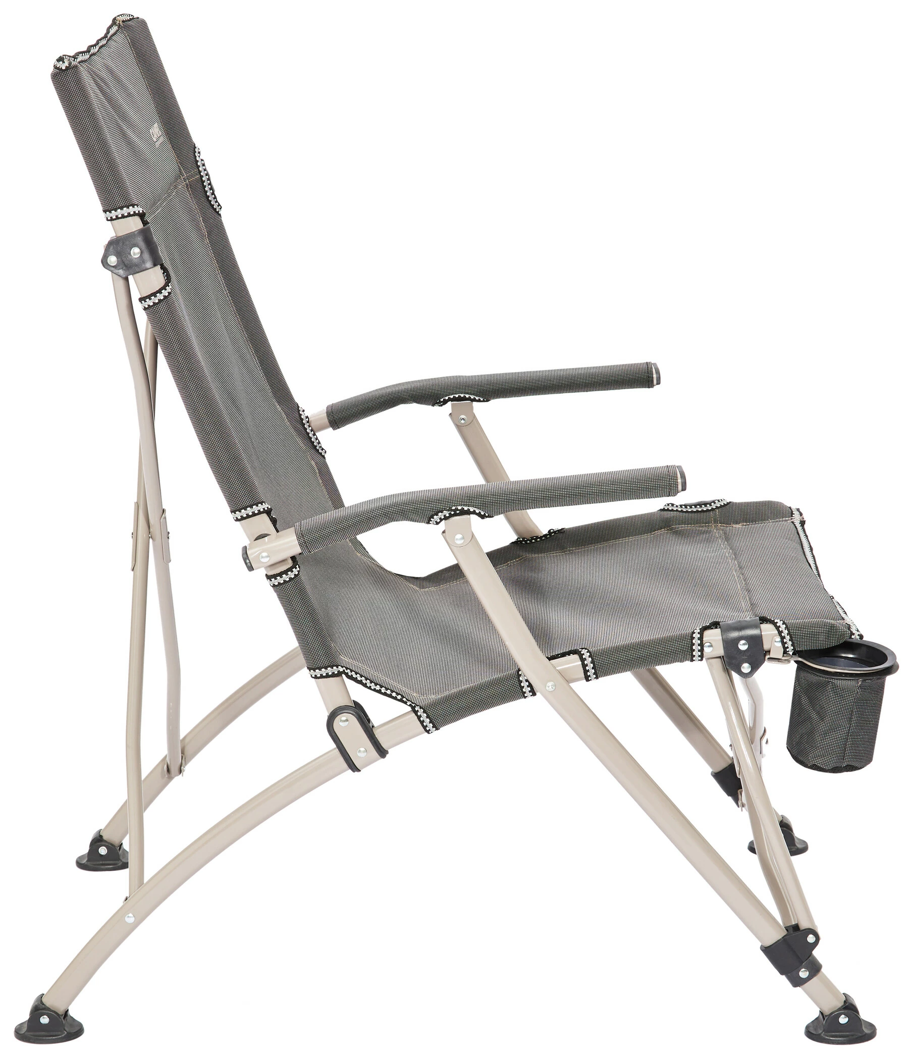 Het stalen frame maakt deze stoel iets zwaarder dan sommige andere kampeermeubels, maar hij is heel stabiel, robuust en duurzaam. Een speciaal kenmerk zijn de extra brede gelede poten, die zelfs op oneffen grind en zachte ondergronden stevig staan.