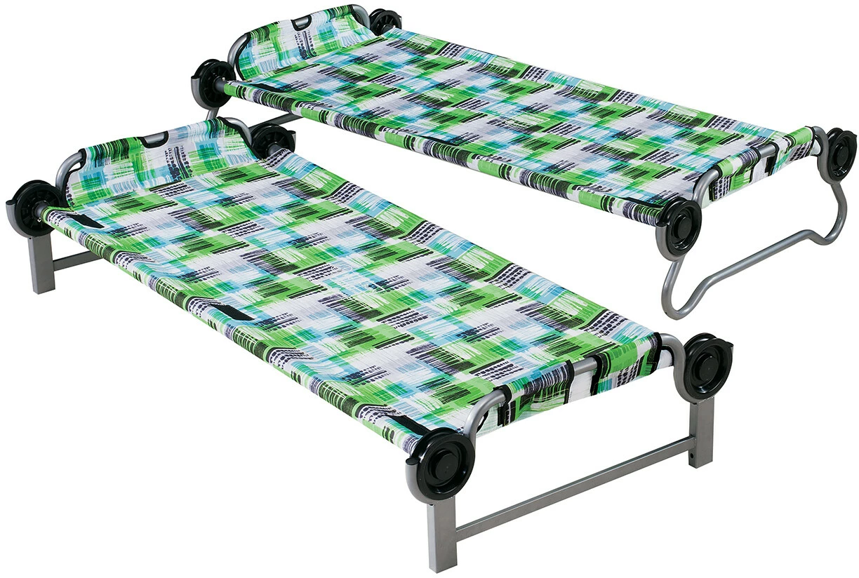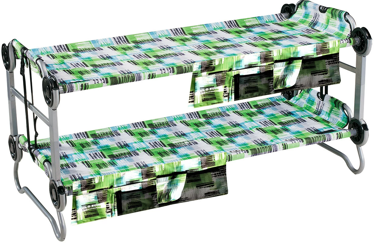 Perfect voor kampeeruitstapjes, logeerpartijtjes of bezoekjes aan grootouders: De Kid-O-Bunk is het ideale stapelbed voor avontuurlijke kinderen in de leeftijd van 7 tot 12 jaar. De Kid-O-Bunk is snel en eenvoudig in elkaar te zetten zonder gereedschap dankzij het modulaire schijfsysteem. Hij is ook zeer comfortabel en flexibel in het gebruik. Gebruik de bedden als twee eenpersoonsbedden voor een nacht onder de sterren of als stapelbed om ruimte te besparen in de tent. De matten kunnen gemakkelijk worden verwijderd en gereinigd. Uw kinderen zullen dol zijn op de Kid-O-Bunk!