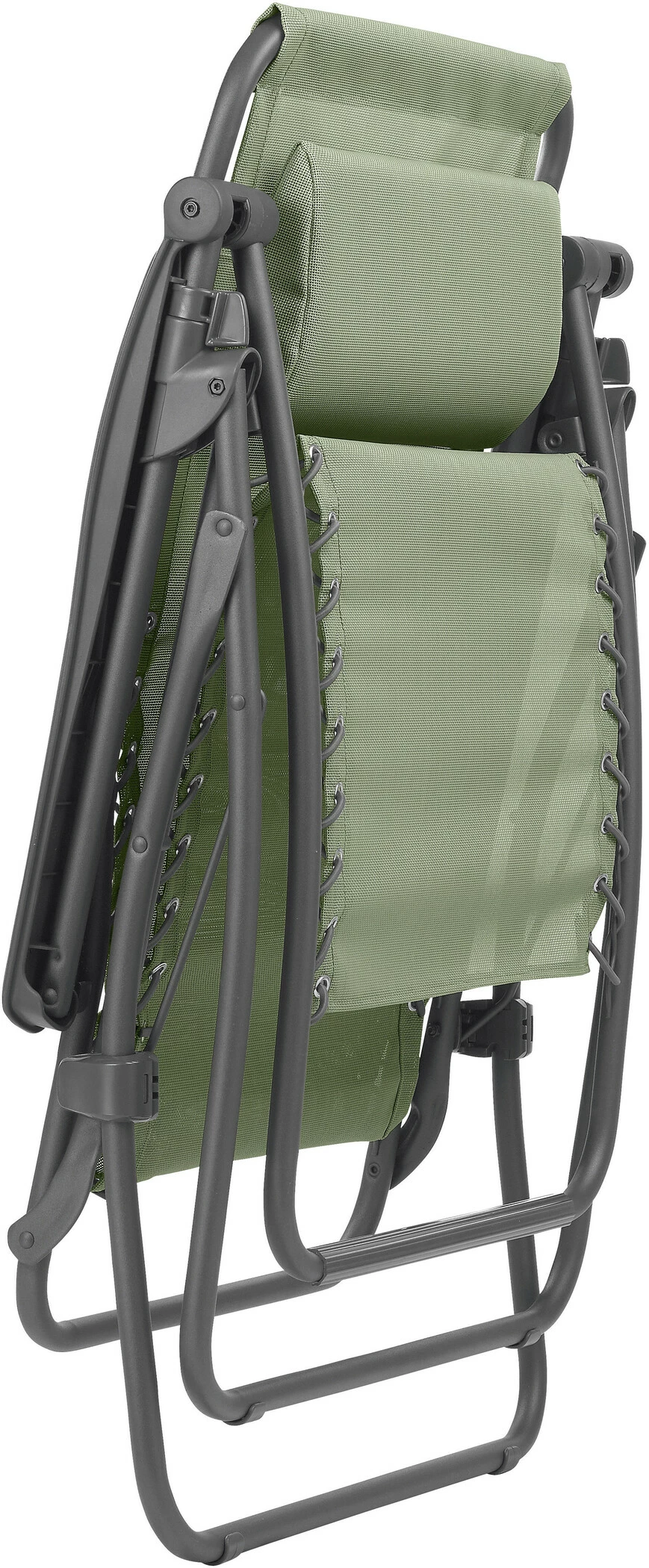 De RSXA relaxfauteuil is een klassiek, onvervangbaar model en is gemaakt van hoogwaardige materialen. Hij is licht en opvouwbaar, bestendig en praktisch en de ideale vintage metgezel voor de mooiste momenten binnen of buiten. De ergonomische hoofdsteun is verstelbaar en afneembaar, zodat u hem perfect kunt instellen voor maximaal comfort. Hij heeft veel verschillende standen, waaronder gewichtloosheid, met de benen iets boven het hart, voor optimale ontspanning.